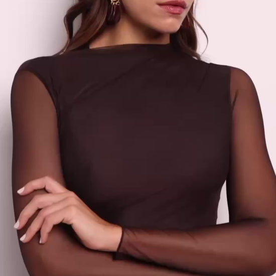 Body de Tul Marrón Talla Única – Elegante, Ajustado y Súper Favorecedor